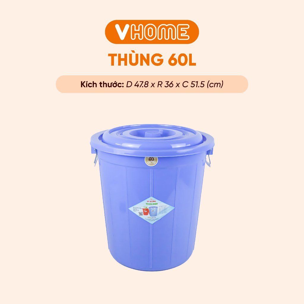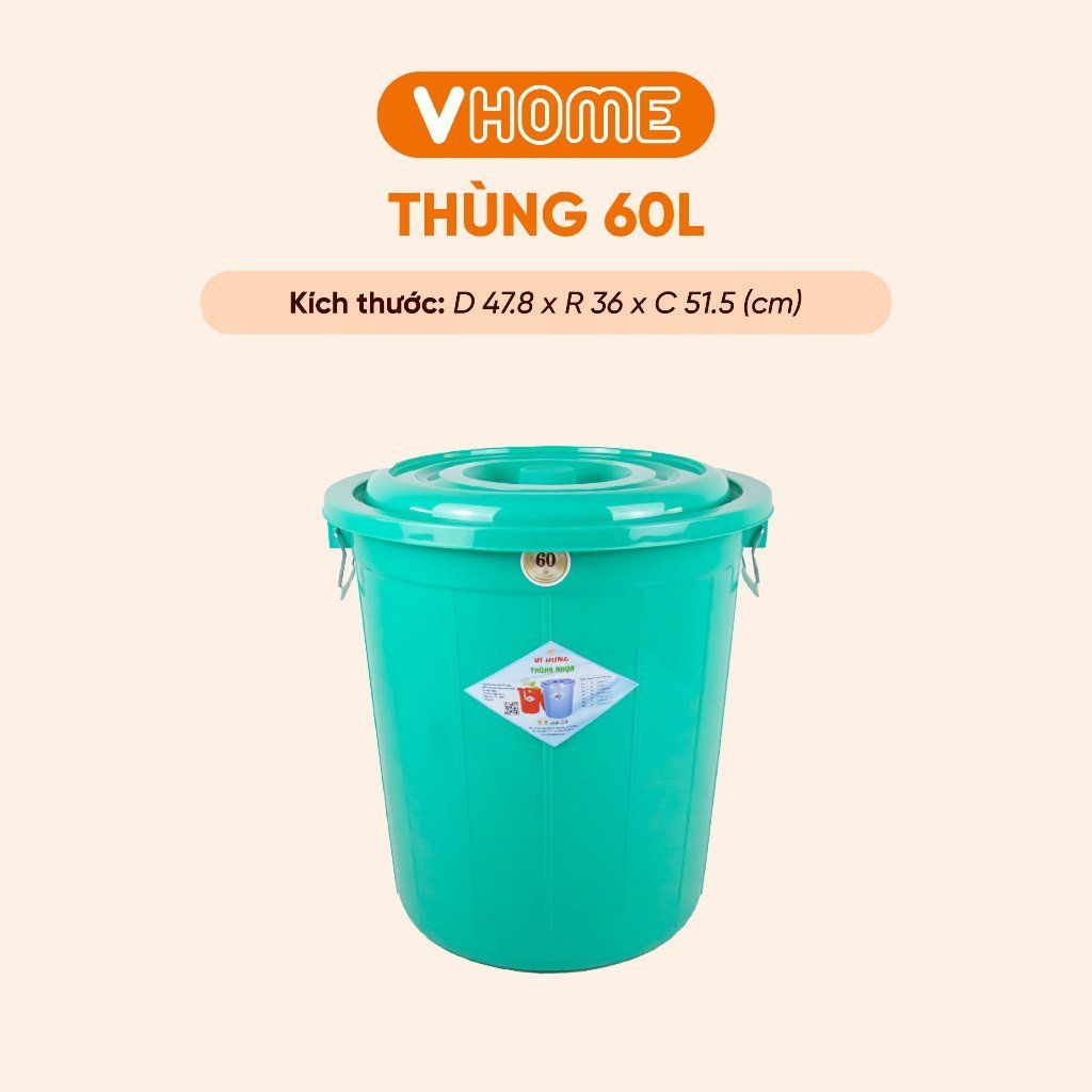 Thùng Nhựa Tròn Có Nắp 60L Nhựa Vĩ Hưng - Đựng Đồ, Lưu Trữ Tiện Lợi
